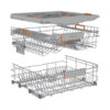 Ovaj zaista jednostavan sistem podešavanja korpi na dva nivoa vam omogućava da u mašinu stanu čak i najveći tiganji i šerpe. Takođe čini da je unutrašnjost vaše mašine potpuno prilagodljiva vašim trenutnim potrebama.