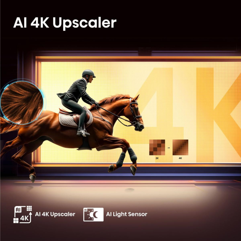 Hisense AI 4K Upscaler otključava vrhunsku jasnoću za sav vaš omiljeni sadržaj. Ova pametna funkcija preoblikuje ne samo vaše omiljene klasike i kućne filmove, već i moderne TV emisije, filmove, pa čak i strimovani sadržaj u zapanjujući 4K kvalitet. Svaki piksel je uzdignut na viši nivo snage vašeg televizora.